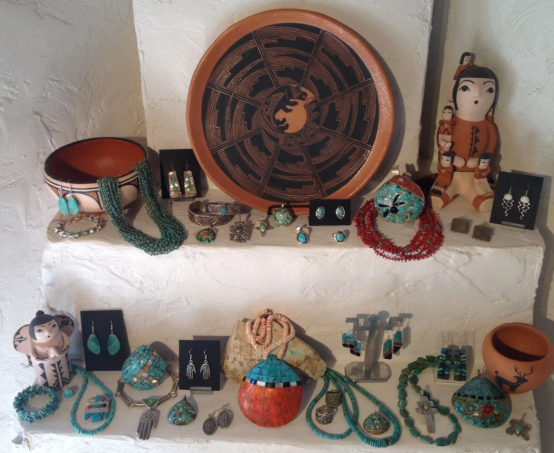 Santo Domingo Pueblo is a Native American Indian village located along the Rio Grande River, just south of Santa Fe, New Mexico. The village is also known as “Kewa”, the name in their native Keresan language. Kewa Pueblo is a traditional Pueblo village built in apartment style homes made of adobe bricks. The people of the village are known for their jewelry making, pottery, and trade history. The nearby Cerrillos Hills were a great source of turquoise that they mined, used in jewelry, and traded for exotic goods, such as sea shells, coral, and parrot feathers. Other stones like serpentine, jet, and pipestone were also traded for the turquoise and are stones used in jewelry making at the village today.